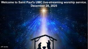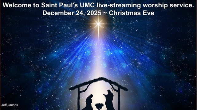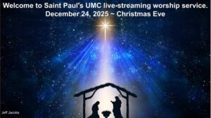 Please join us for Worship at: Saint Paul’s United Methodist Church 10:00 am on Sunday Mornings. Also, join us for our Christmas Eve Candlelight Worship service with guest violinist, Laurie McFaul, along with our Chancel and Handbell Choirs, on Wednesday, December 24th, at 4:00 pm!